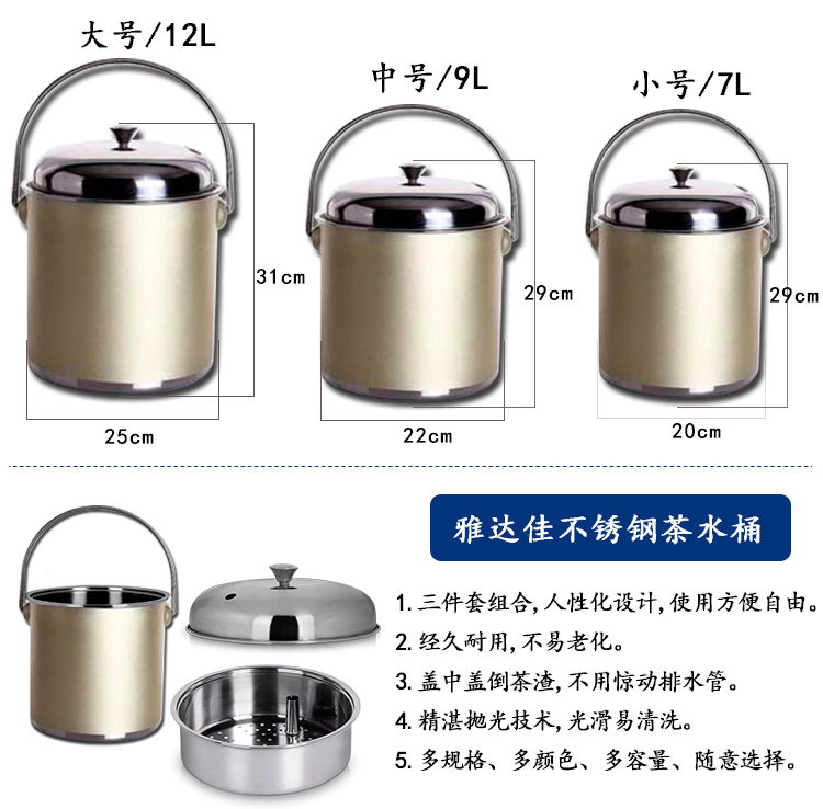 Tea barrel tea residue barrel with lid small number of tea waste water barrel stainless steel tea water barrel tea residue barrel Gongfu tea fitting barrel
