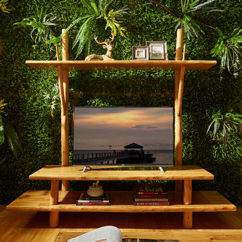 Pure solid wood log ecological TV cabinet 2 meters Cypress log Chinese TV wall frame wall hanging frame creative layer frame