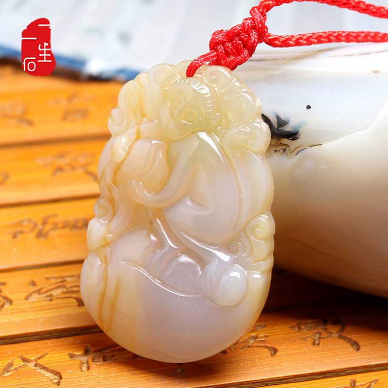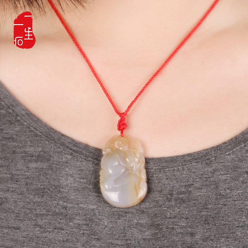 Clear Barn Straight Down] A lifetime One Stone XII Zodiac's life year natural white jade medullary pendant male necklace female gift
