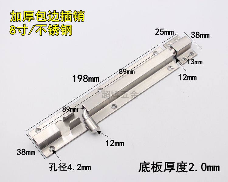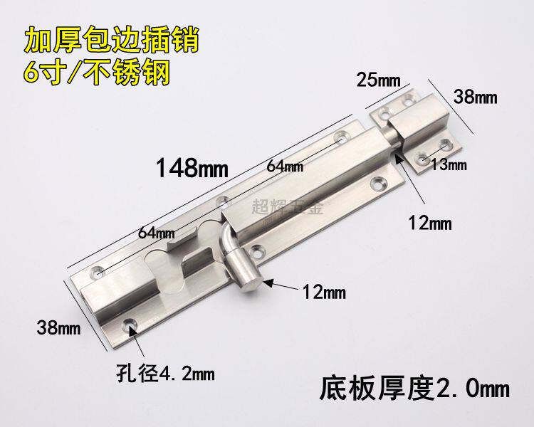 Stainless steel thickened lengthened wood door Ming fitted bolt door tethered door buttoned widening thickened door bollards