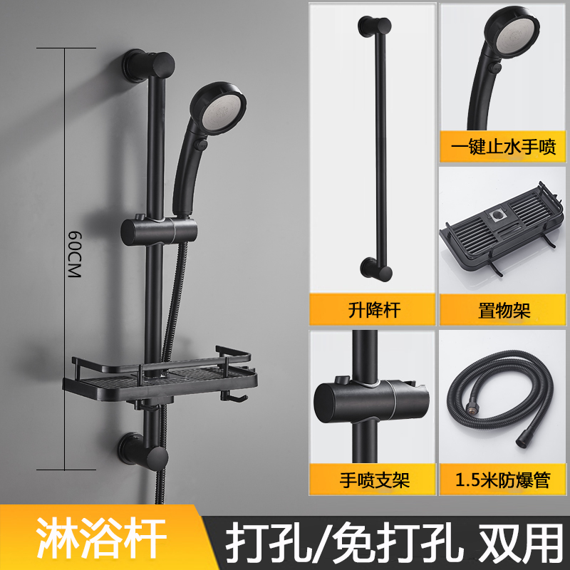 Short single shower rod Short shower rod Five-speed three-piece set of space aluminum lifting rod dual-use space aluminum lifting rod with tray dual-use space aluminum rod round steel hand spray 1 5-meter tube dual-use space aluminum rod square steel hand spray
