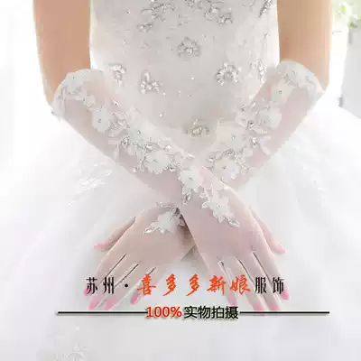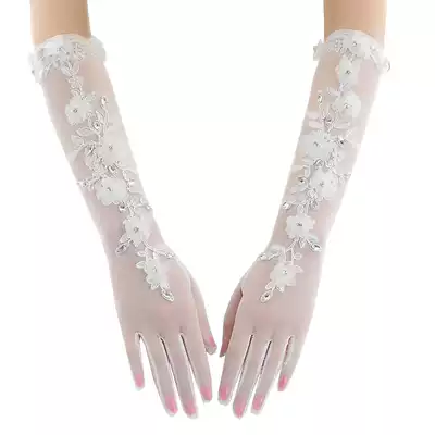 Bride Gloves Spring and Summer Long Edition White Lace Full Finger Korean Wedding Wedding Accessories Sunscreen Scar