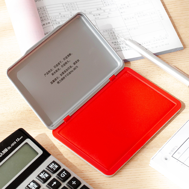 Deli 9891 Red Printing Table Seconds Dry Printing Clay Financial Stamp Metal Enclosure Square Quick Drying Blue Black Red Printing Pad Size Two-Color Printing Table Mini Supplemental Ink