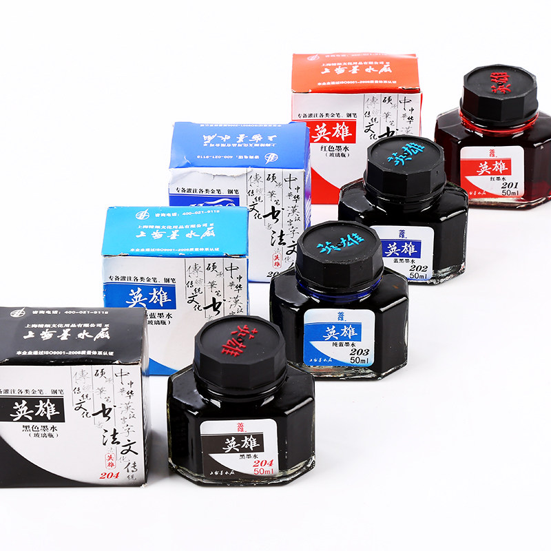 (Send pen) Hero pen ink pen ink pen non-carbon dye type does not block pen boys and girls beginners children posture sophistication pupils with 204 pure blue black red ink