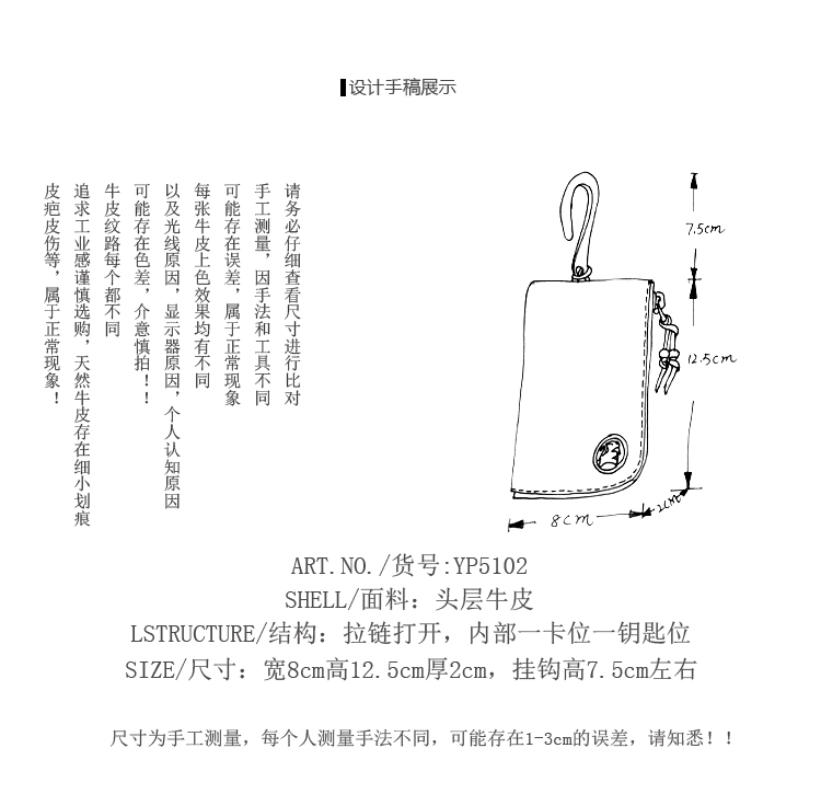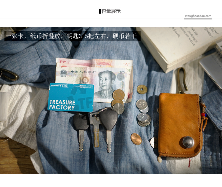 Japan and South Korea retro creative handmade cowhide leather car remote control key bag men and women zipper change coin bag