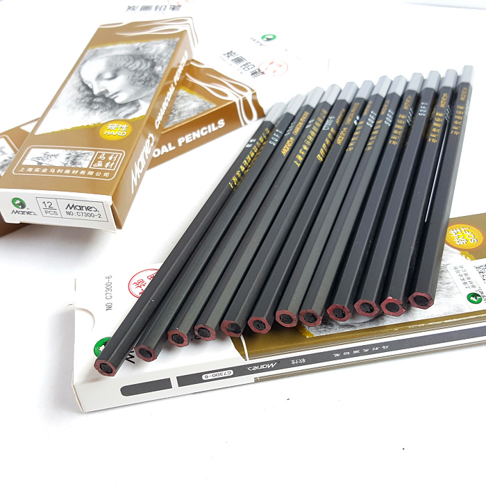 Mali Charcoal Drawing Pencil C7300 Carbon Painting Pencil Drawing Pencil Sketch Sketching Raw Carbon Pen Soft Medium Hard