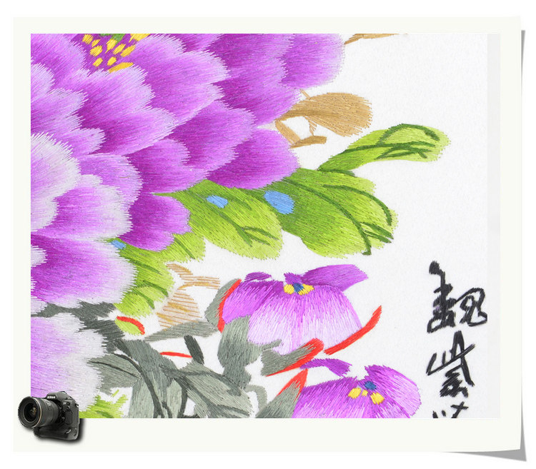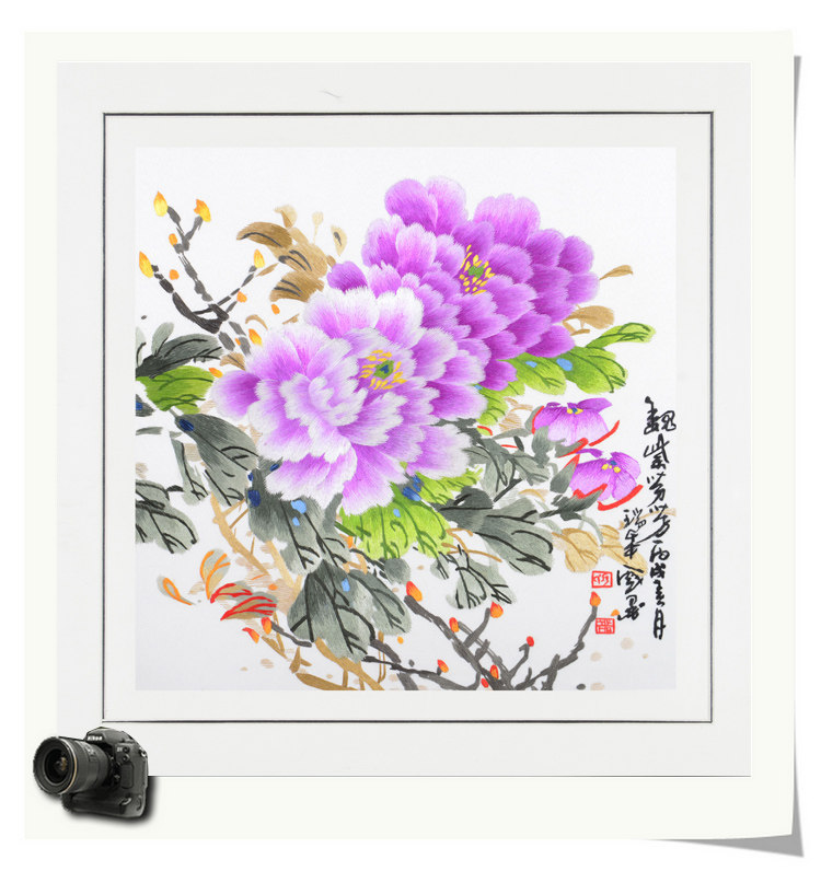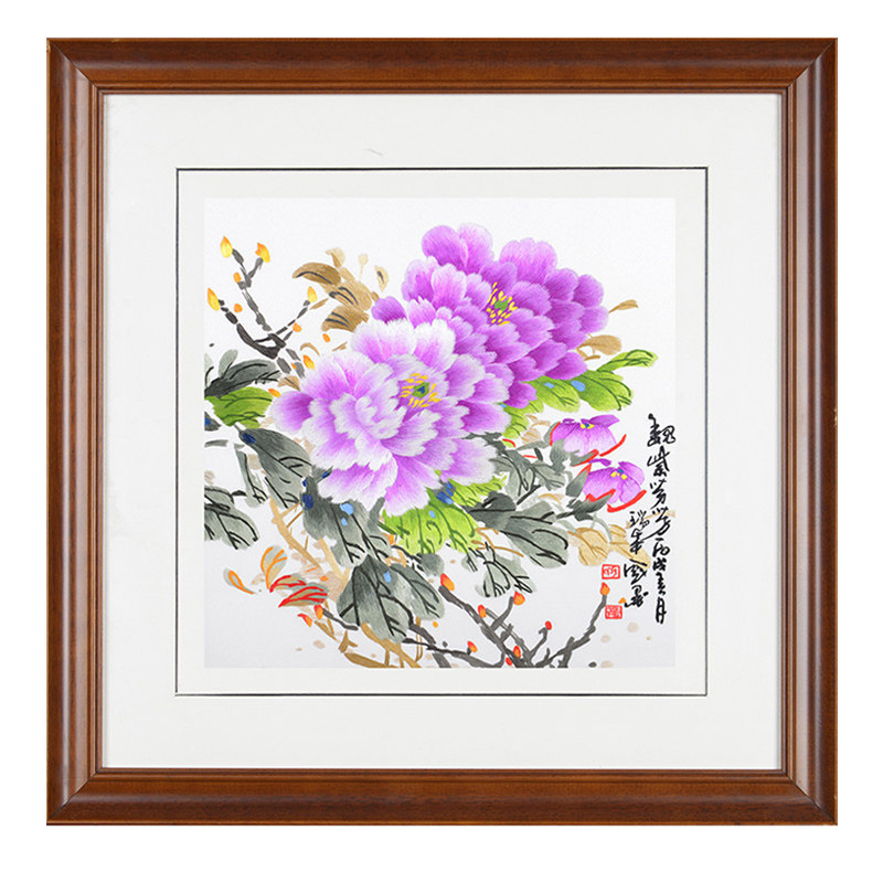 Ancient Wu female Red handmade Suzhou embroidery painting Su embroidery finished hanging painting Living room bedroom dining room decorative painting Peony