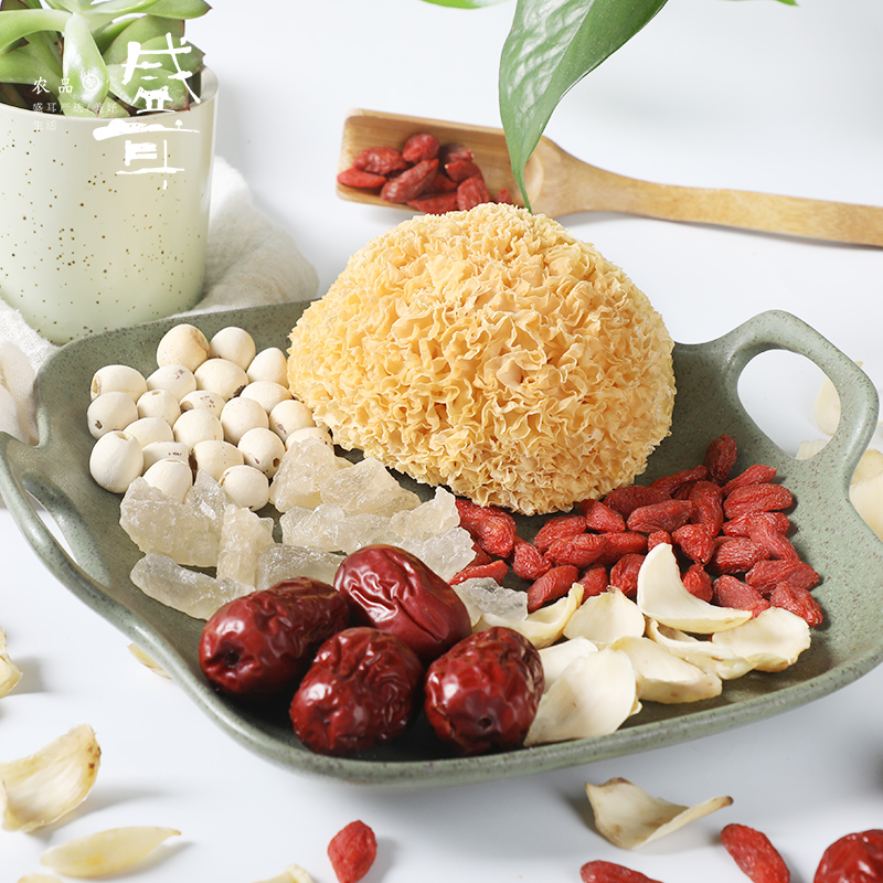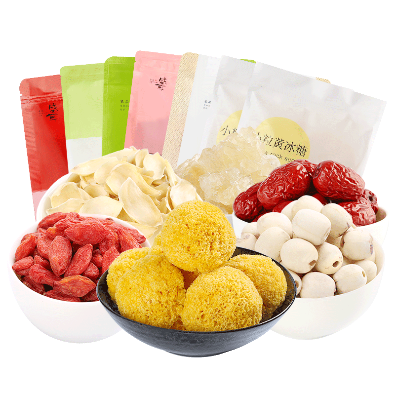 Silver ear red date lotus seed and medlar lily dry ice sugar