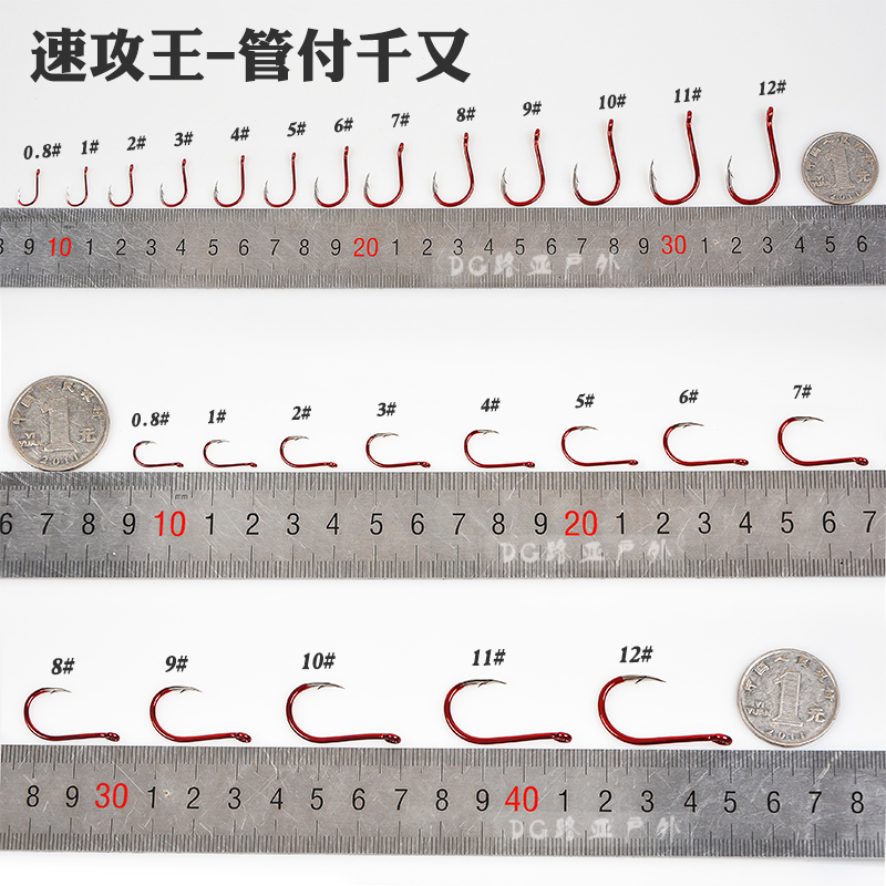 Quick attack king triangle tooth fish hook Red tube Fu Qianyou fish hook High carbon steel fishing hook Bold barbed fish hook