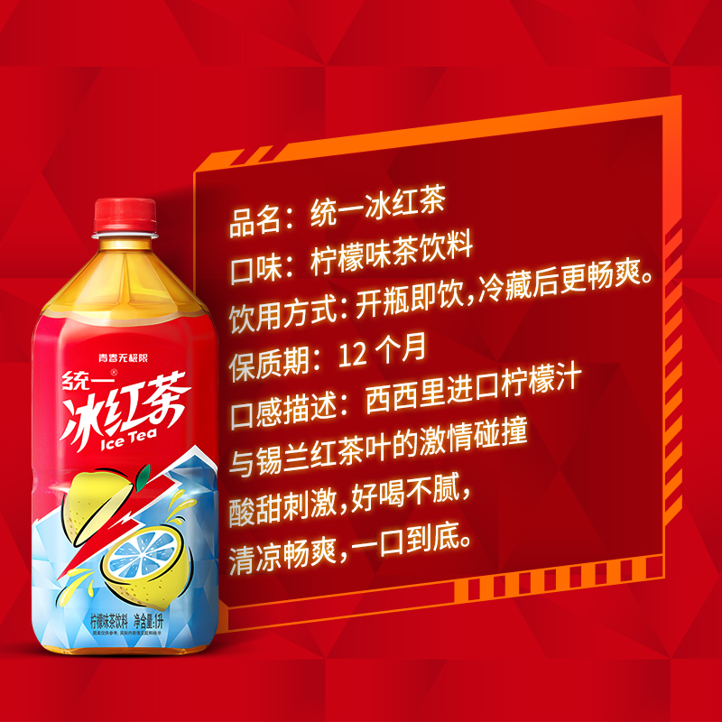 Unified Iced Tea 1 liter * 8 bottles full box lemon tea drink Youth Unlimited bottle cheap breakfast