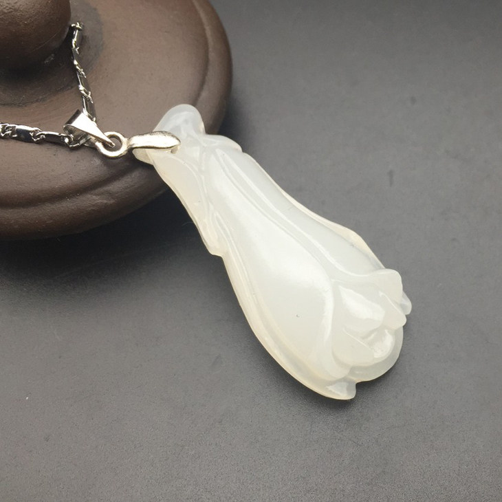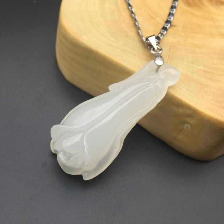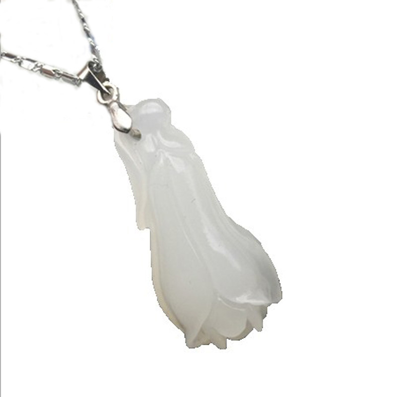 White jade pendant woman's jade necklace jade orchid jade pendant Yupei Yupei 925 silver chain son sent girlfriend jade pendant