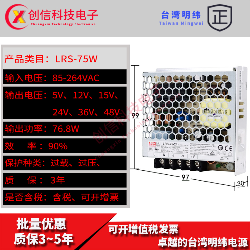 LRS-75-12 Taiwan Mingwei 72W 12V 12V power supply 6A DC DC Monitoring LED lamp with display screen