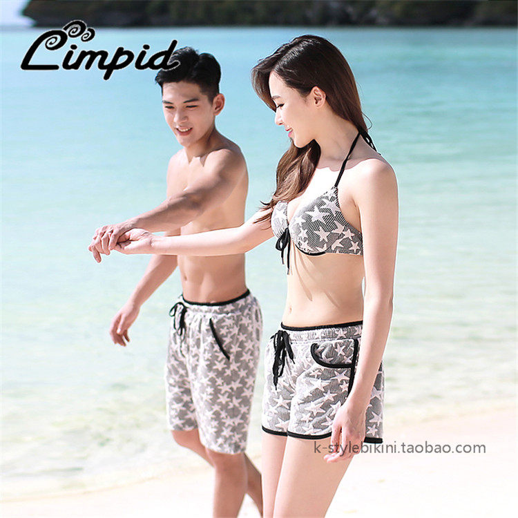 South Korea's new couple bikini beach pants small breasts gathered in steel Four-corner Pants Star Printed Swimsuit Three Sets