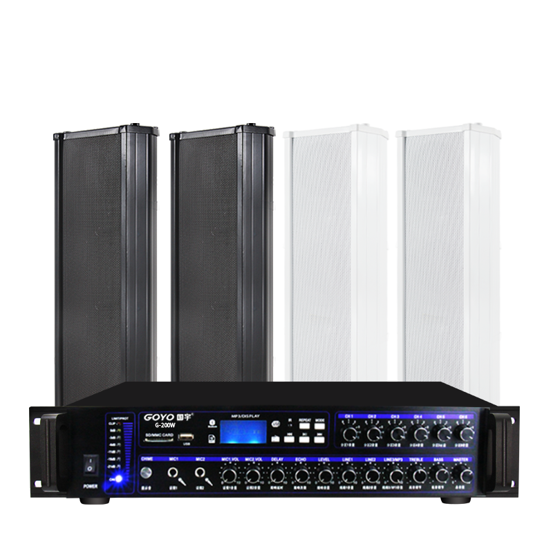 2 30W sound column 100W amplifier 20m cable 3 30W sound column 150W amplifier 40m cable 4 30W sound column 200W amplifier 60m cable 6 3