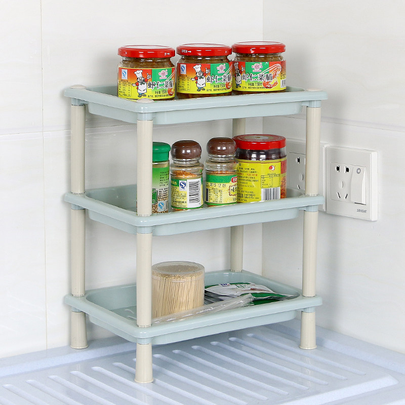 Mini shelf Plastic kitchen 3-layer powder room bathroom triangle finishing rack Small desktop office storage shelf