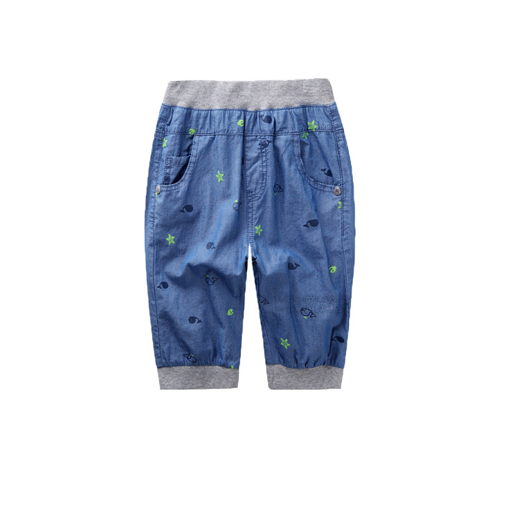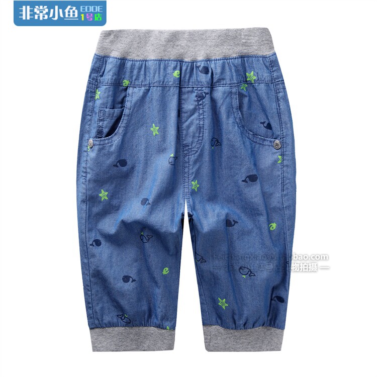Very small fish 38299 boy summer casual soft and breathable cool quick pure cotton thin soft jeans 7-minute pants