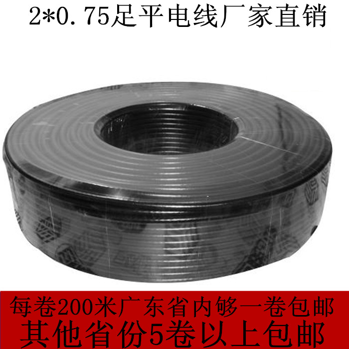 RVVB2 core 0 75 square sheath power supply lamp holder line flat parallel line black 2*0 75 pure copper wire