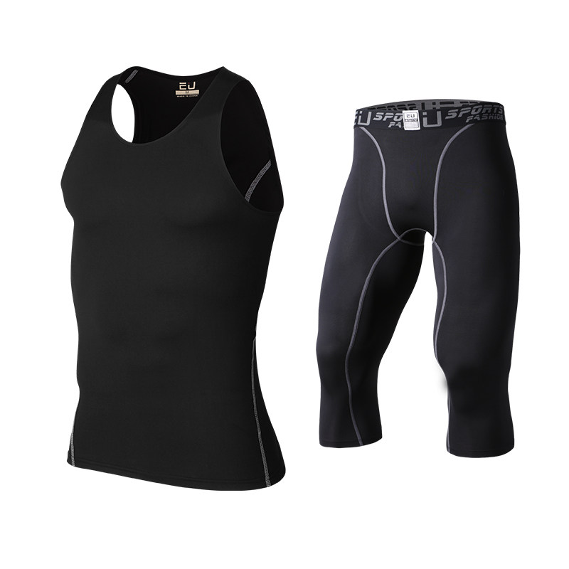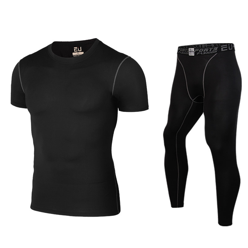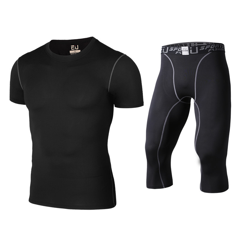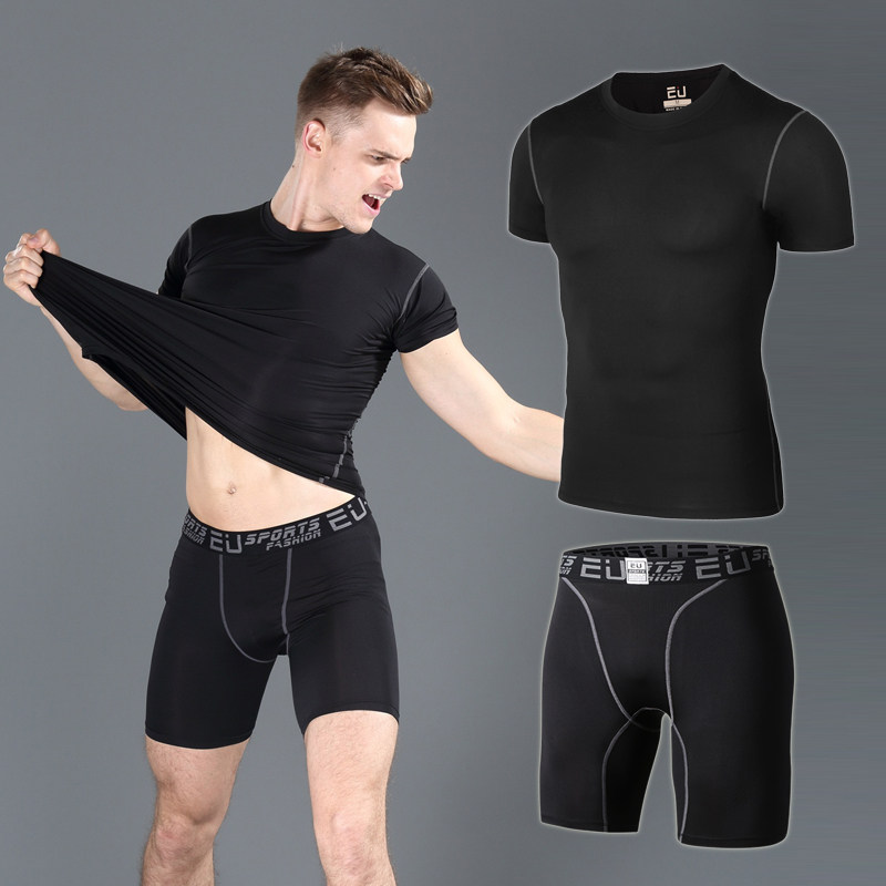 Breathable sports fitness tights quick-drying running training basketball short-sleeved suit men's gym three-piece suit