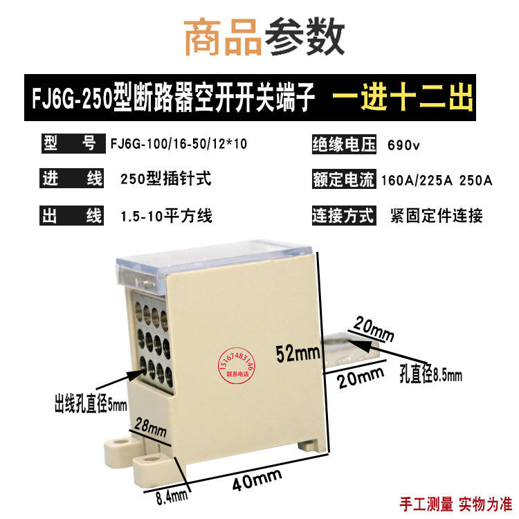 FJ6G-250 12times 10 one in twelve out switch terminal 250A molded case switch terminal extension wire copper bar