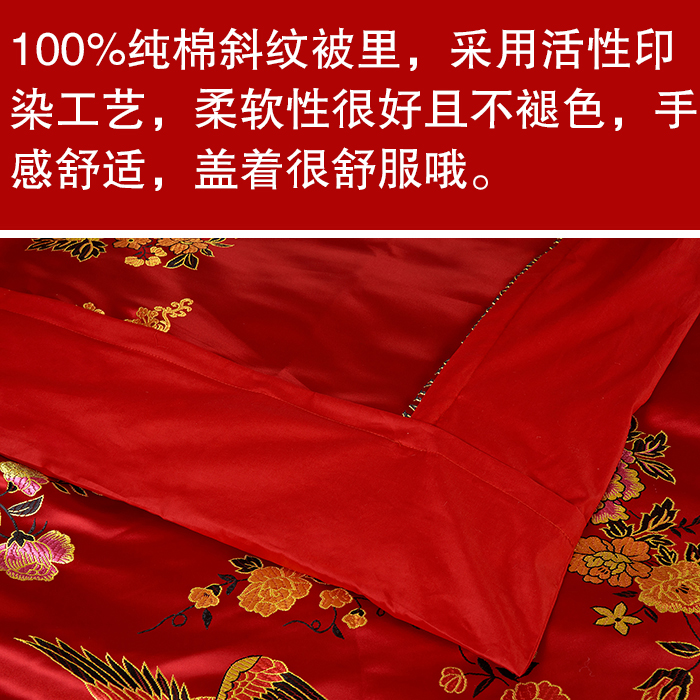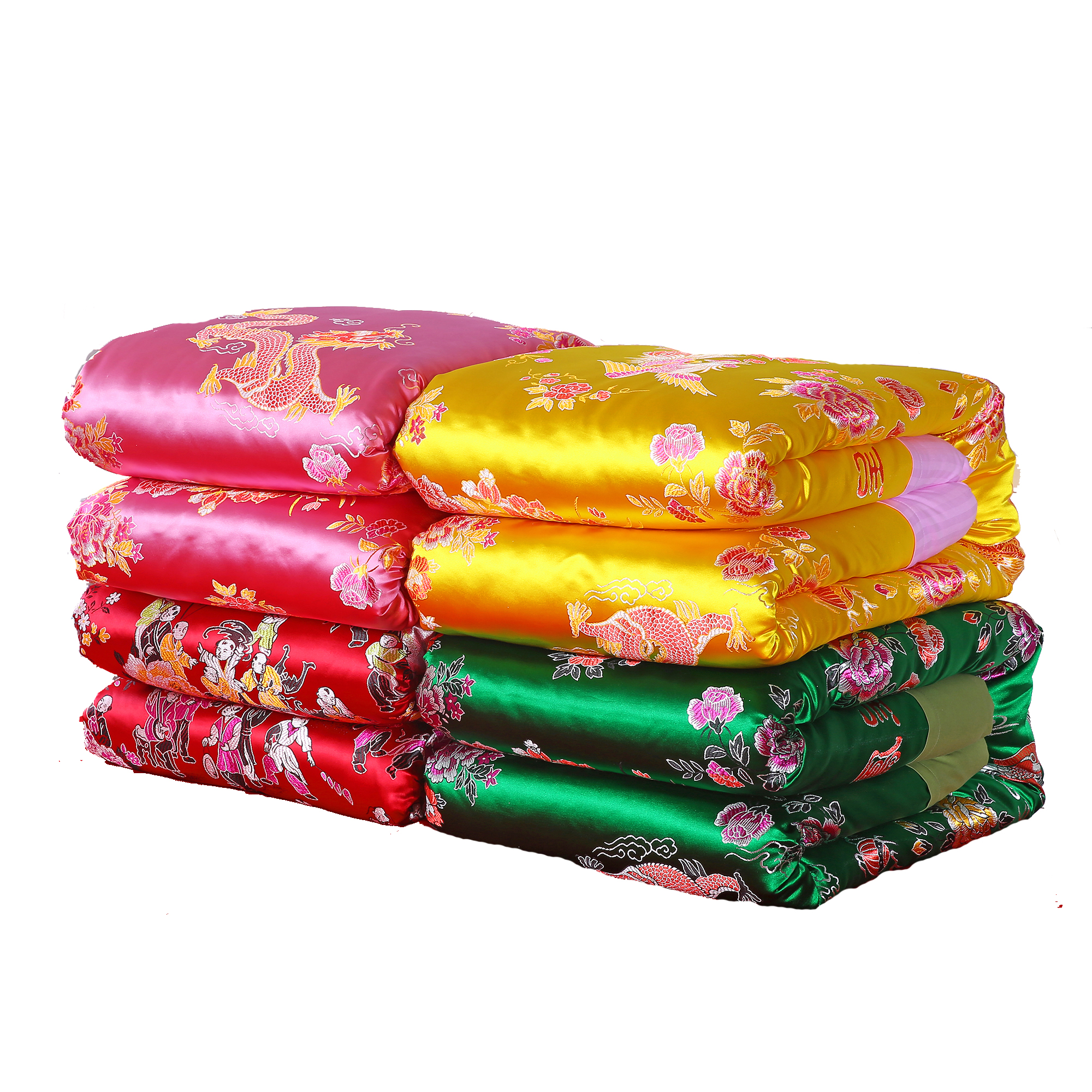 Wedding quilts to be accompanied by a new wedding celebration with silk quilted by a large red green dragon crested 100 son silk satin handmade pure cotton quilt