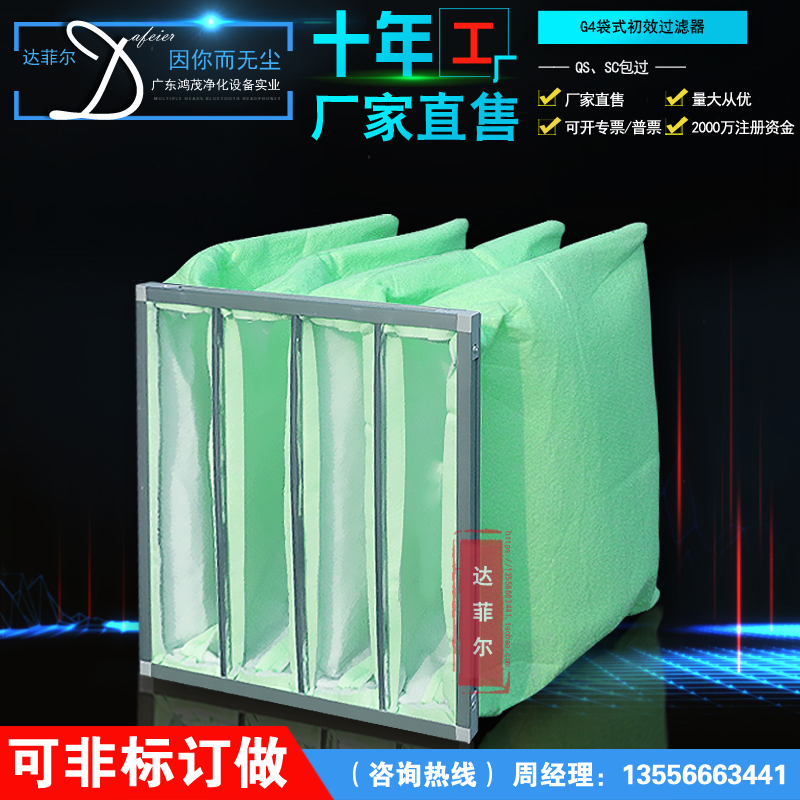 G4 cotton preliminary effect bag type filter overdraft windward strong resistance low air conditioning wind cabinet filter bag at first effect filter bag manufacturer