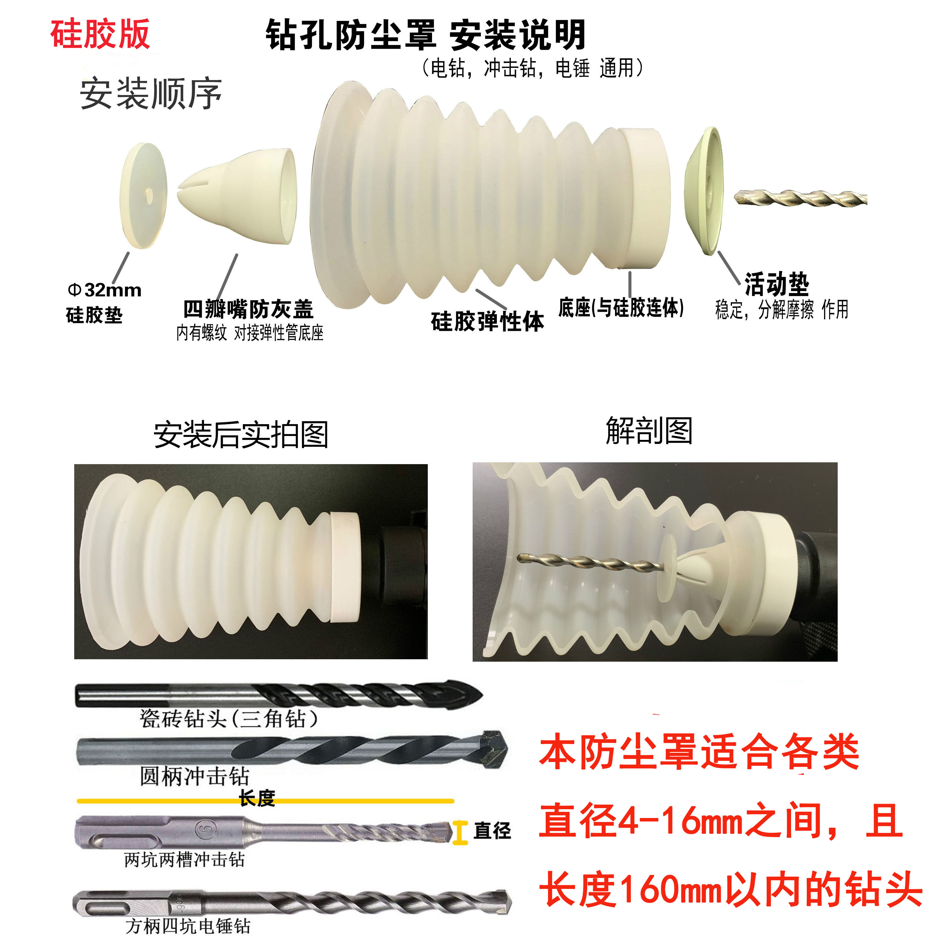 Silicone dust cover 1 only (suitable for drill 4-16mm) silicone dust cover 2 only (suitable for drill 4-16mm)