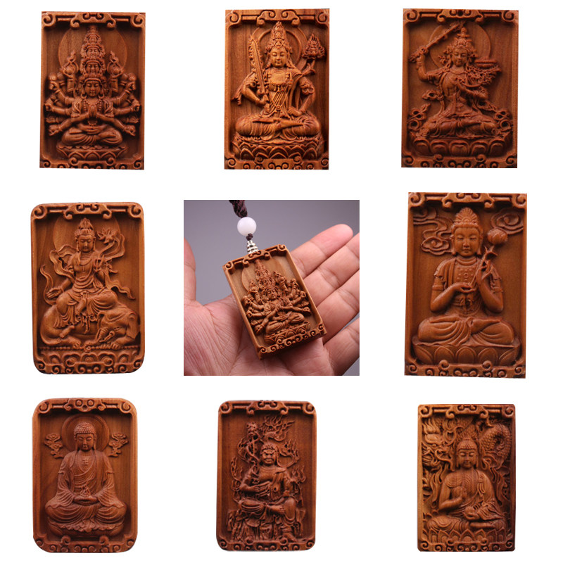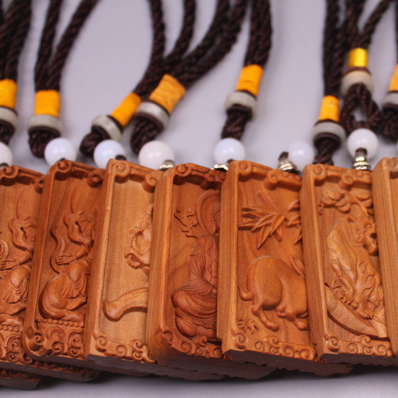 Honolulu wood carving piece eight Guardian Saint Shuangzhou Listed male and female peace without accrued double-sided pendant