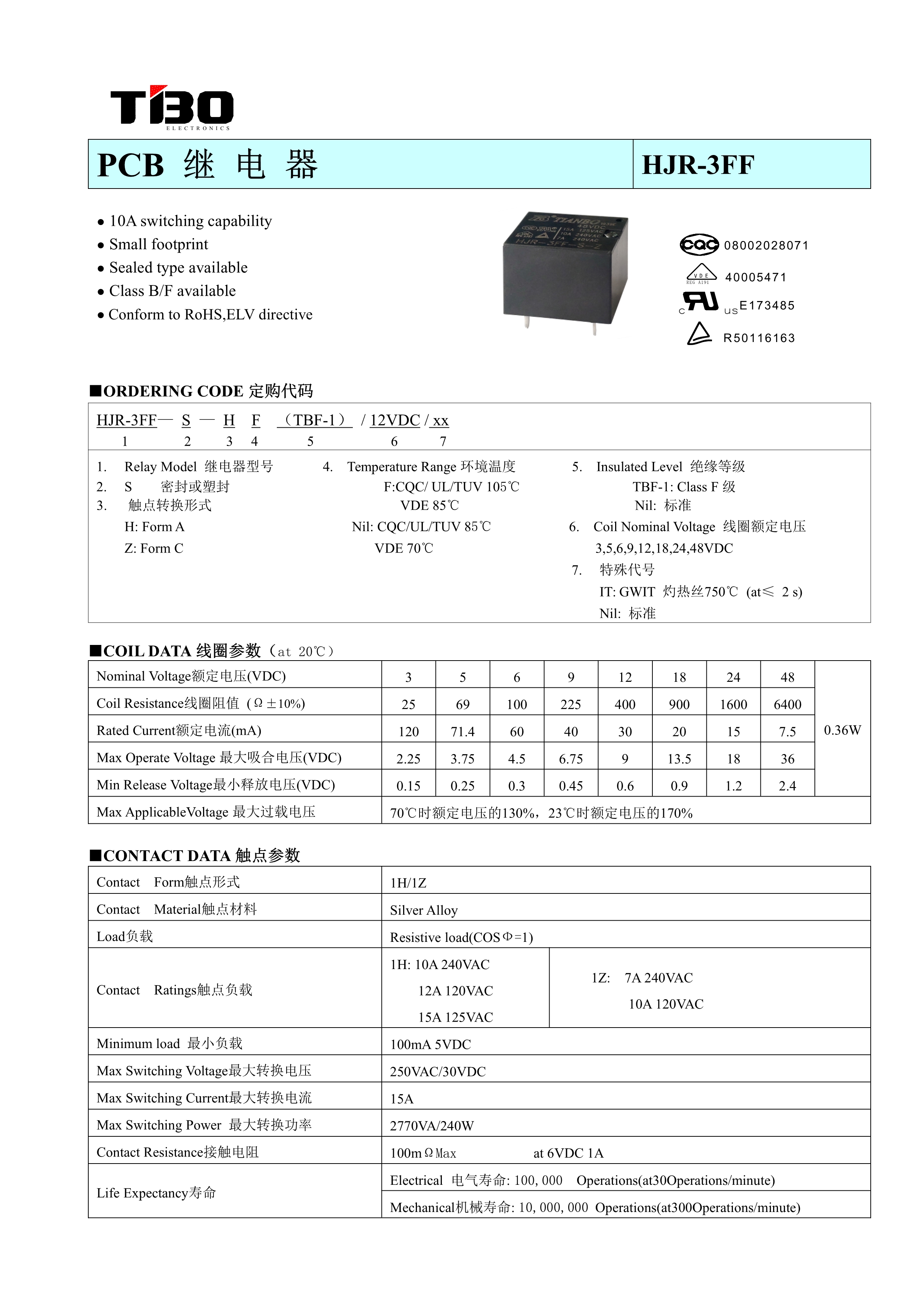 HJR-3FF-S-Z-5VDC 5-pin HJR-3FF-S-Z-12VDC 5-pin HJR-3FF-S-Z-24VDC 5-pin HJR-3FF-S-Z-12VDC 5-pin HJR-3FF-S-Z-24VDC 5-pin HJR-3FF-S-Z-24VDC