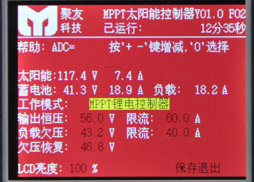 MPPT Solar Controller Y01 0 version 12V to 96V 20A-65A High power lead-acid lithium power multifunction