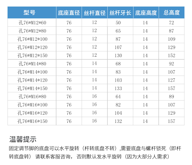 Factory direct anchor screw with hole D76 flat foot cup foot cup 304 stainless steel adjustment foot M12m14m16