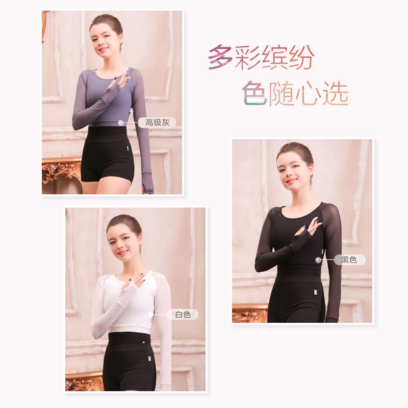 BaiUk Dance Training Skill Net Yarn Splicing Long-sleeved Blouses Fitness Training Short of Repairing Body Yoga 116120009