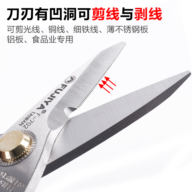 Imported Taiwan Fuguya F-702 multi-function stainless steel scissors Quick cut fiber scissors Food scissors