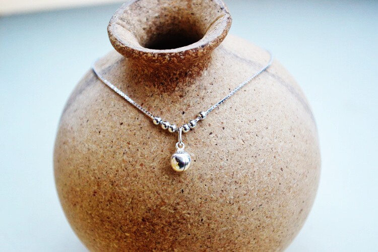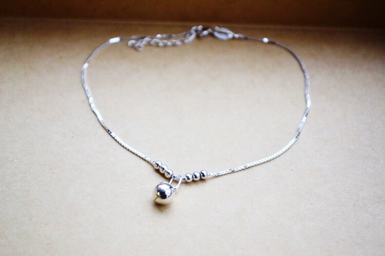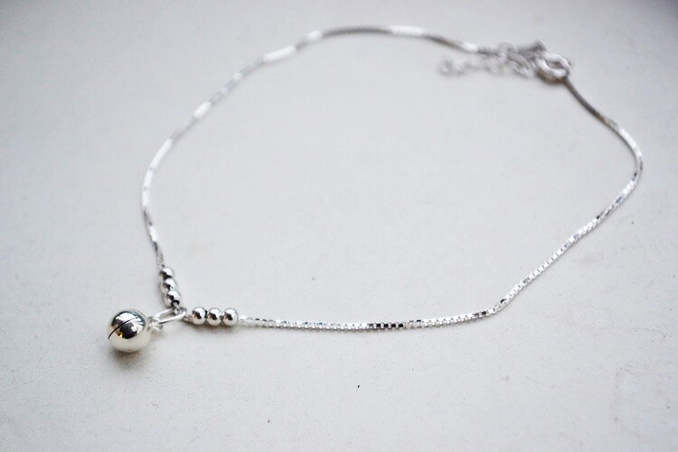 Small bell silver bean bean bead bead 925 pure silver foot chain female Han edition and simple Japanese Korean student accessories small fresh