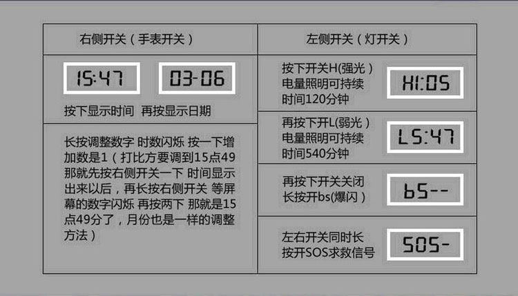 Outdoor sport wrist lamp waterproof watch with intense light flashlight rechargeable night running riding light on hand lamp