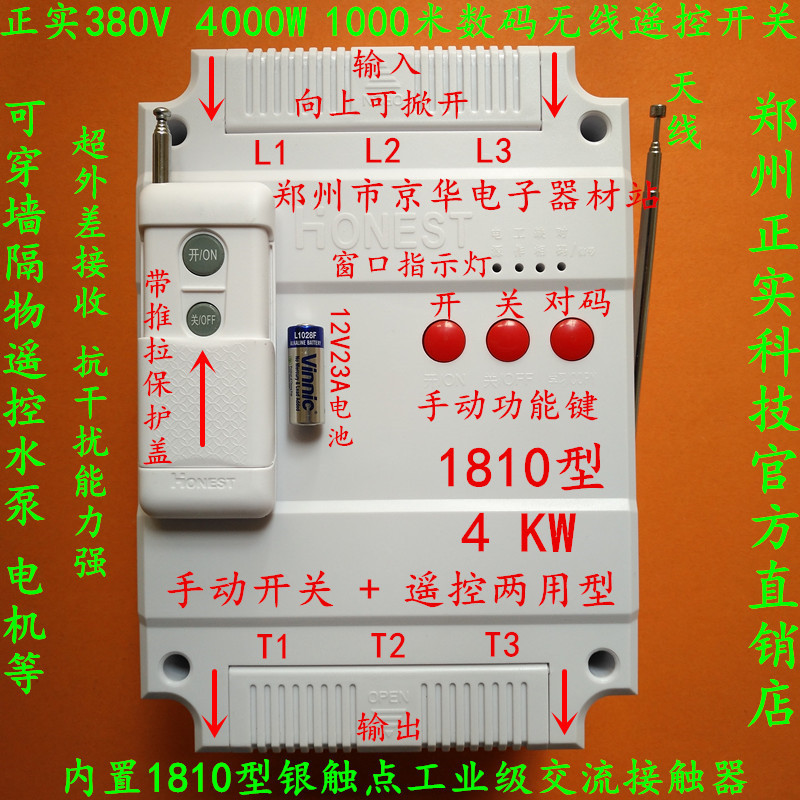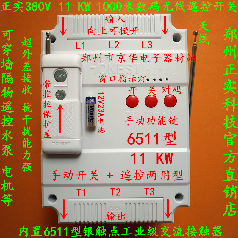 Positive 380V7 5KW1 km water pump motor manual remote control dual-use switch wearing wall with absence phase protection function