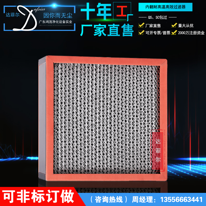 High temperature resistant high-efficiency filter H13 High efficiency filter 304 stainless steel high temperature resistant air filter baking varnish