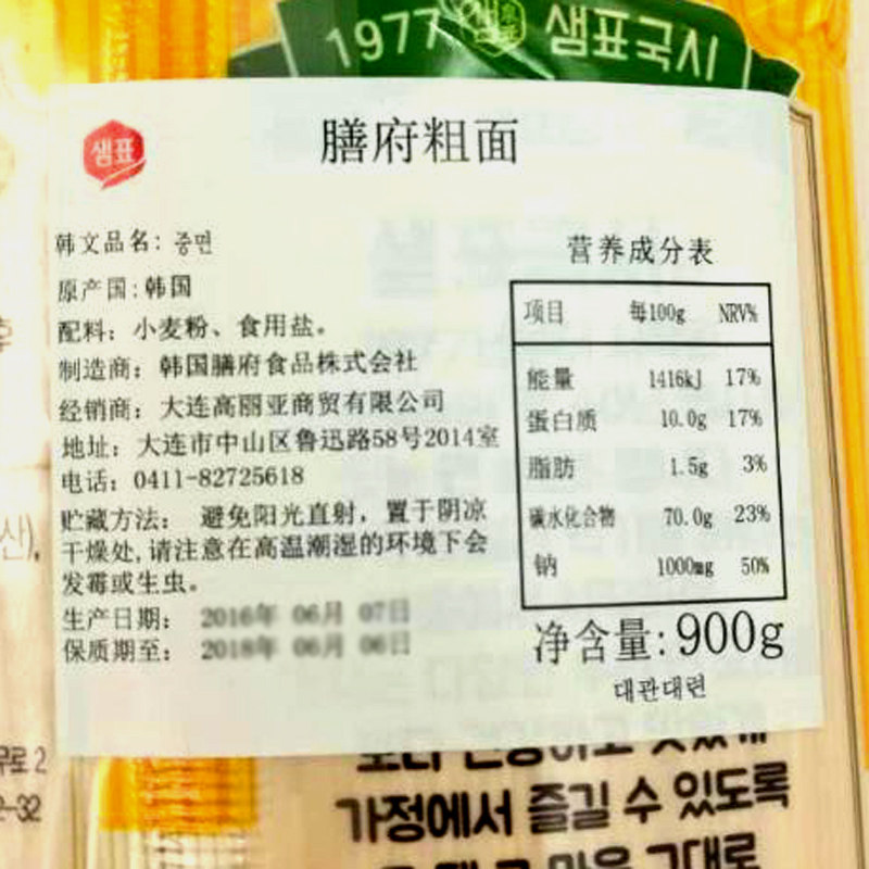 Korean imports of Sempo thick noodles noodles noodles thin noodles fried sauce noodles 900g Until July 22