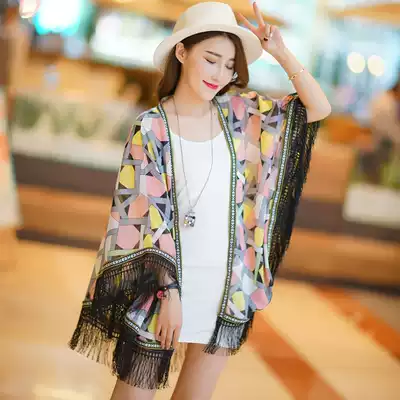Sunscreen cardigan clothes women's V-neck chiffon tassel wild beach tourism ethnic cardigan jacket spring and summer