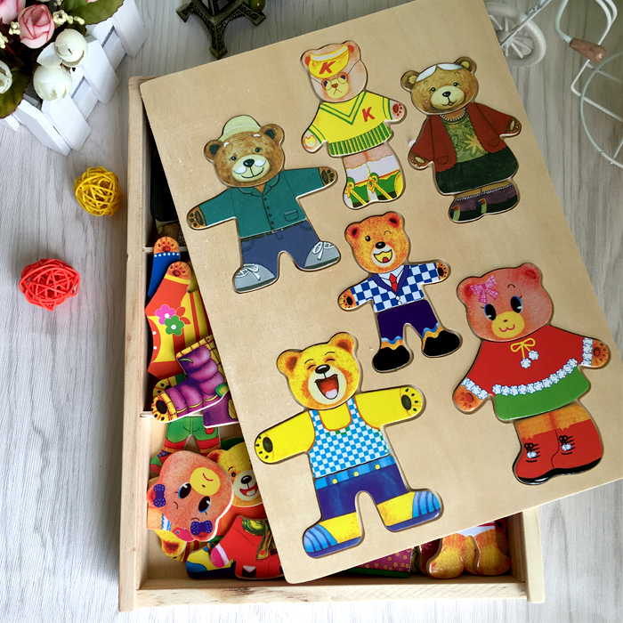 Kindergarten Puzzle Area Large Class Middle Class Teaching Aids Children Wooden Cubs Wearing Clothes Changing Puzzle Jigsaw Puzzle