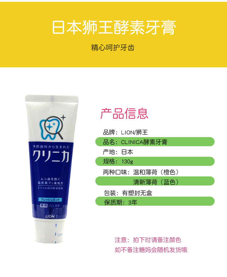 Japan local purchase Lion King enzyme clean toothpaste toothpaste toothpaste moth-proof bright white descaling 130g toothpaste spot