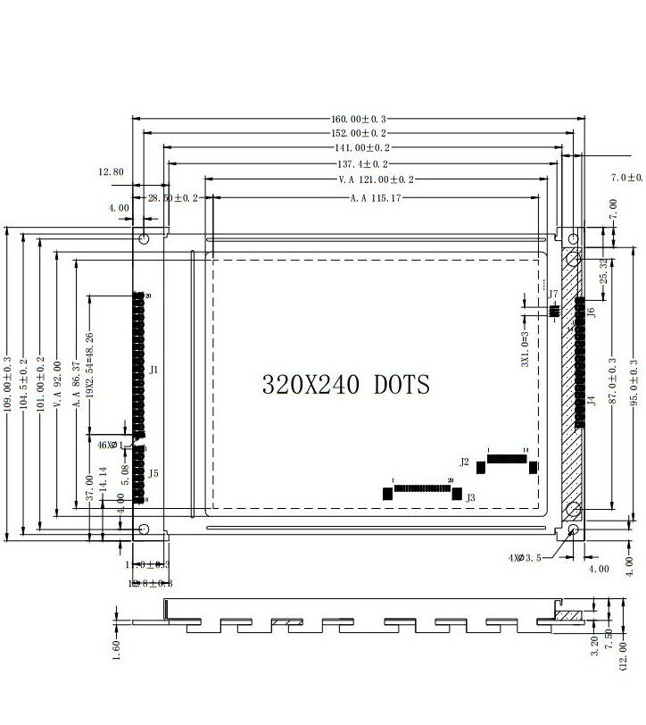 Factory direct 322020 - point LCD screen RA8835 master IC standard 5 7 - inch module blue yellow ash