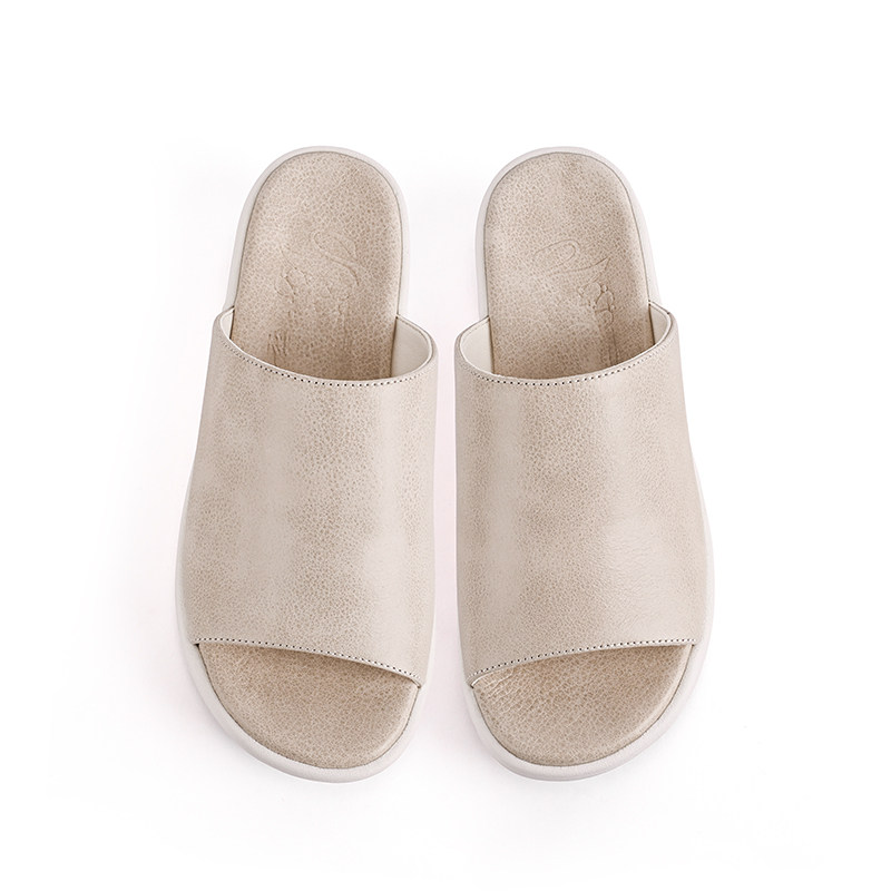 Lazy soft bottom comfortable leather flat bottom women's sandals fashion leather chic sandals and slippers women's summer outer wear 801A