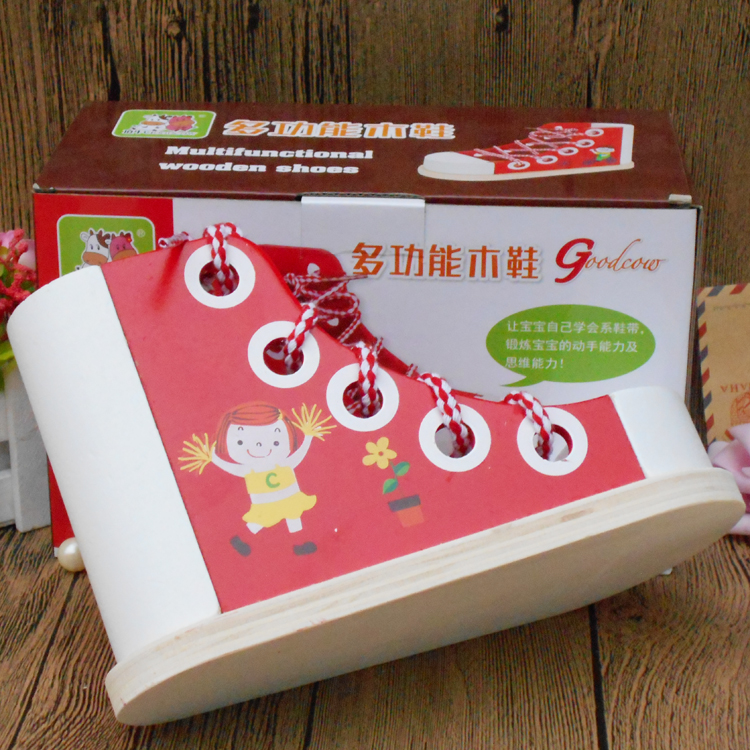 Wooden Puzzle Force Kindergarten Gift Children Students Birthday Gift Toys Learning Aids Multifunctional Tie Shoes