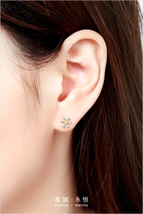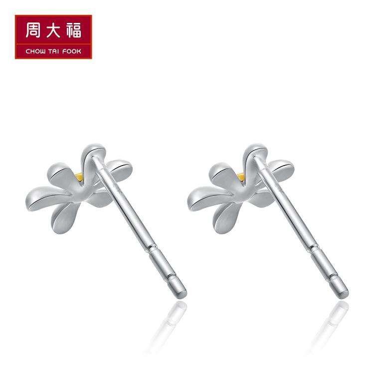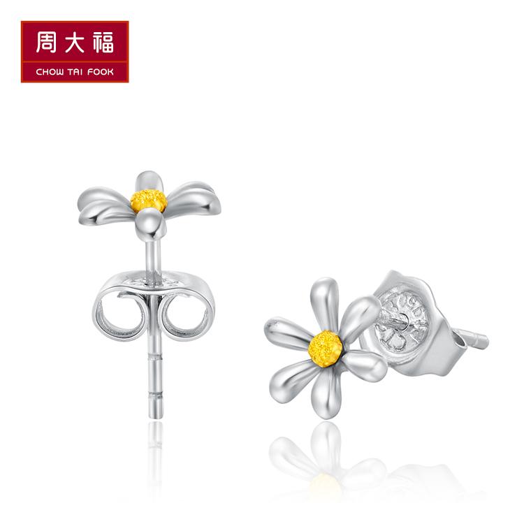 Chow Tai Fook Y era small fresh small daisy pure gold gold PT950 platinum ear needle PT159213 selection