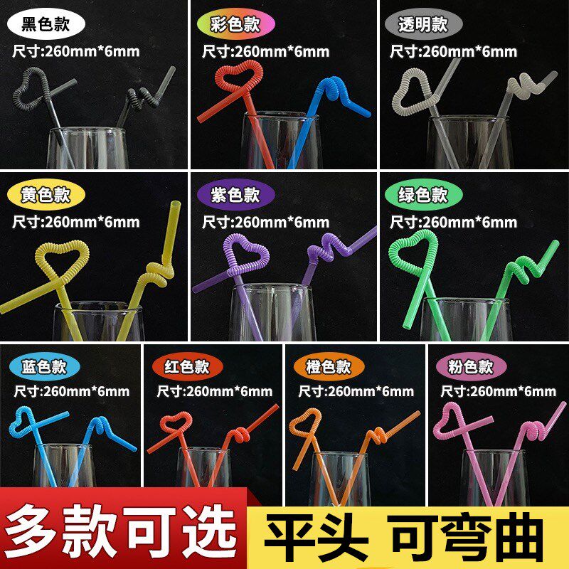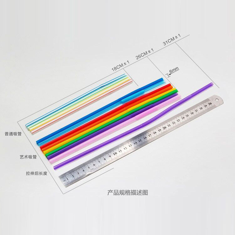 Bendable art straw Plastic stretch Disposable Transparent juice beverage food grade straw Color handmade