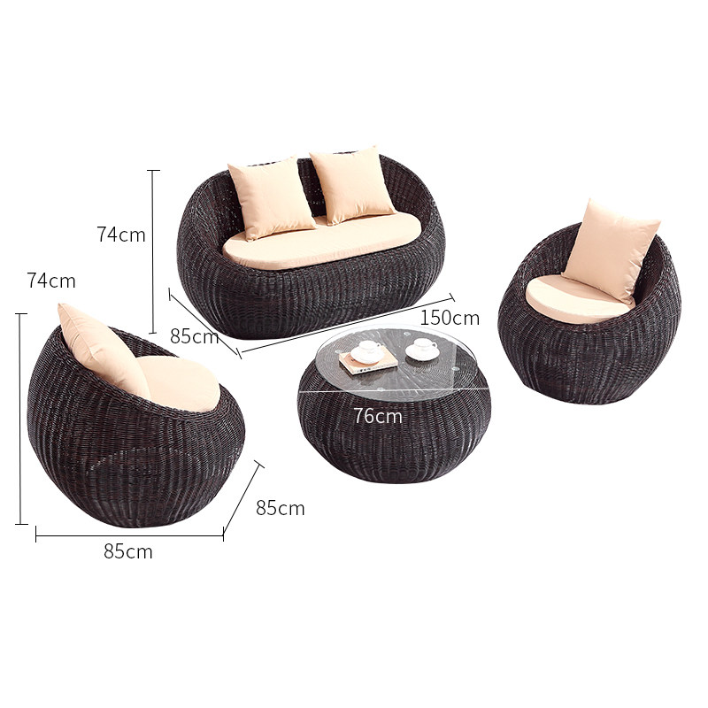 Outdoor Sofa Composition Patio Terrace Terrace Rattan waterproof sunscreen Balcony Rattan Chairs Famous and casual rattan sofa