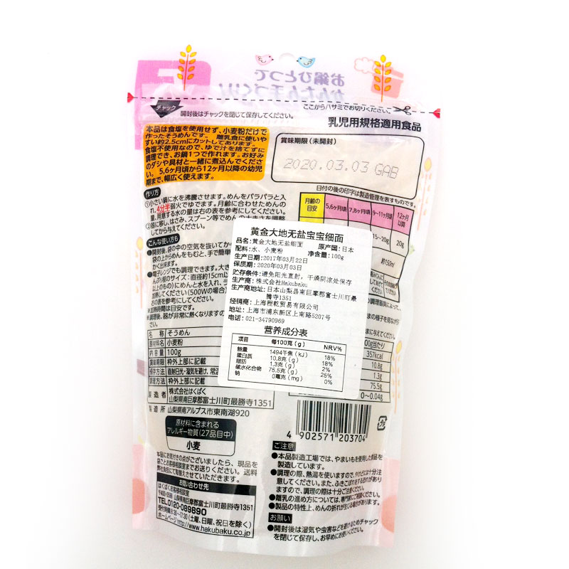 Japan hakubaku gold earth baby baby noodles with no salt wheat fine noodles Chopped Flour-Taobao