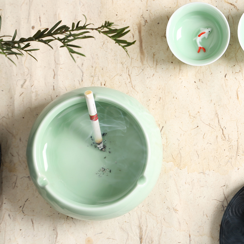 Ceramic story creative personality ashtray crystal large celadon European living room smoke-proof cute ashtray trend