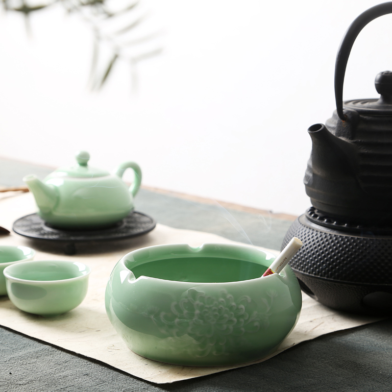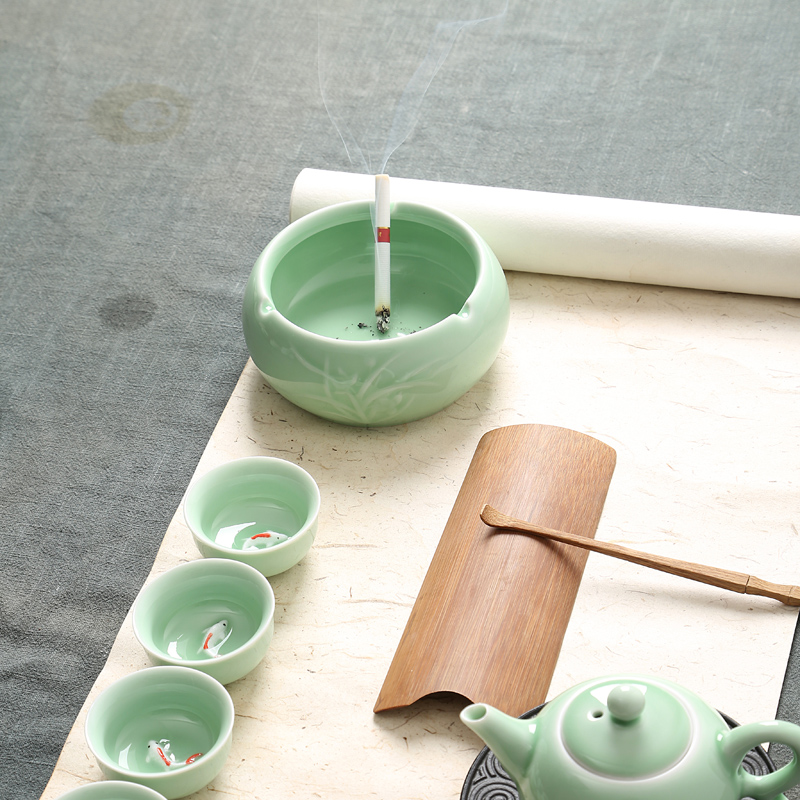 Jade porcelain ashtray-lotus jade porcelain ashtray-ink landscape inner arc jade porcelain ashtray-mountain family celadon-plum green ashtray Zen tea one persimmon ashtray -2 jade porcelain ashtrays (smoke extinguishing trough)-