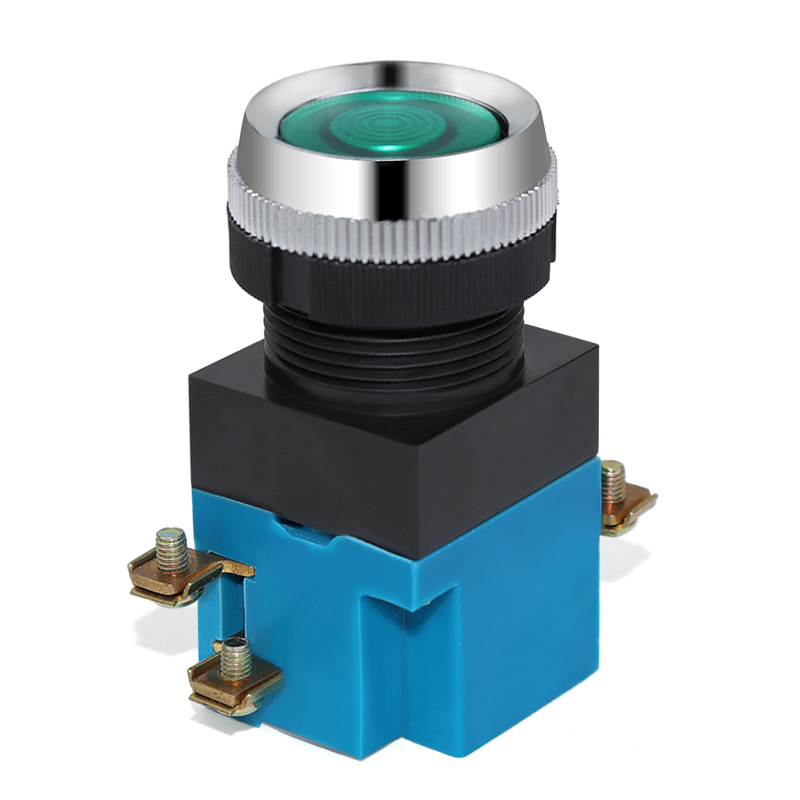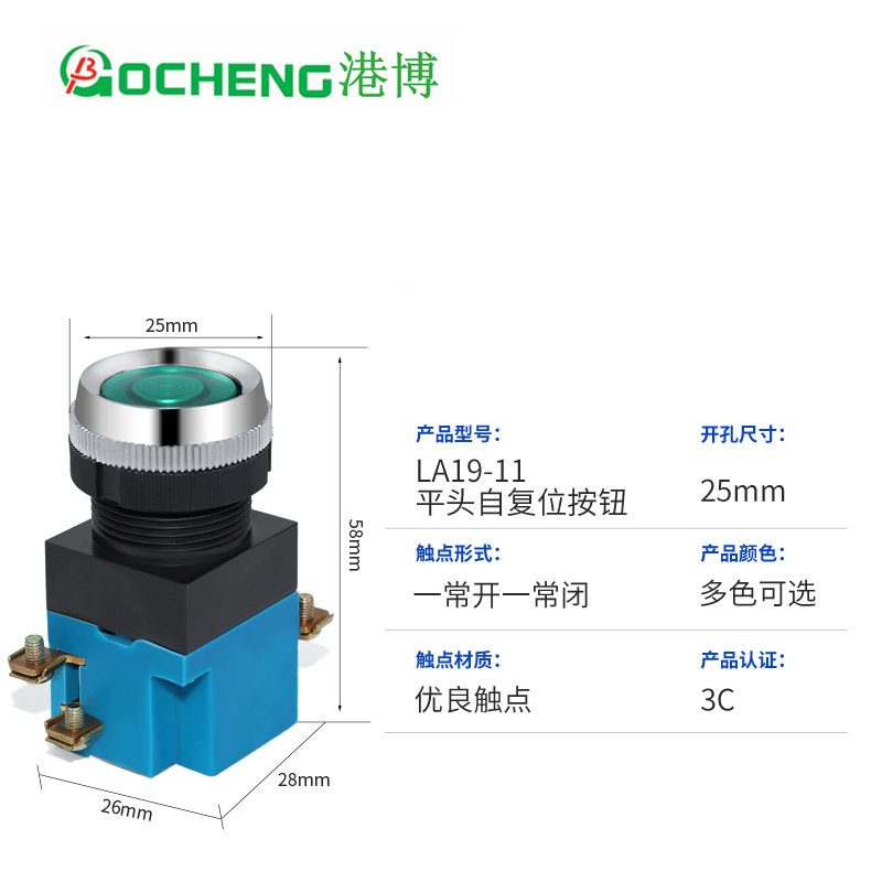 Shanghai Port Boo LA19-11 button switch flat head self-reset button open and close drilling 25MM red and green yellow